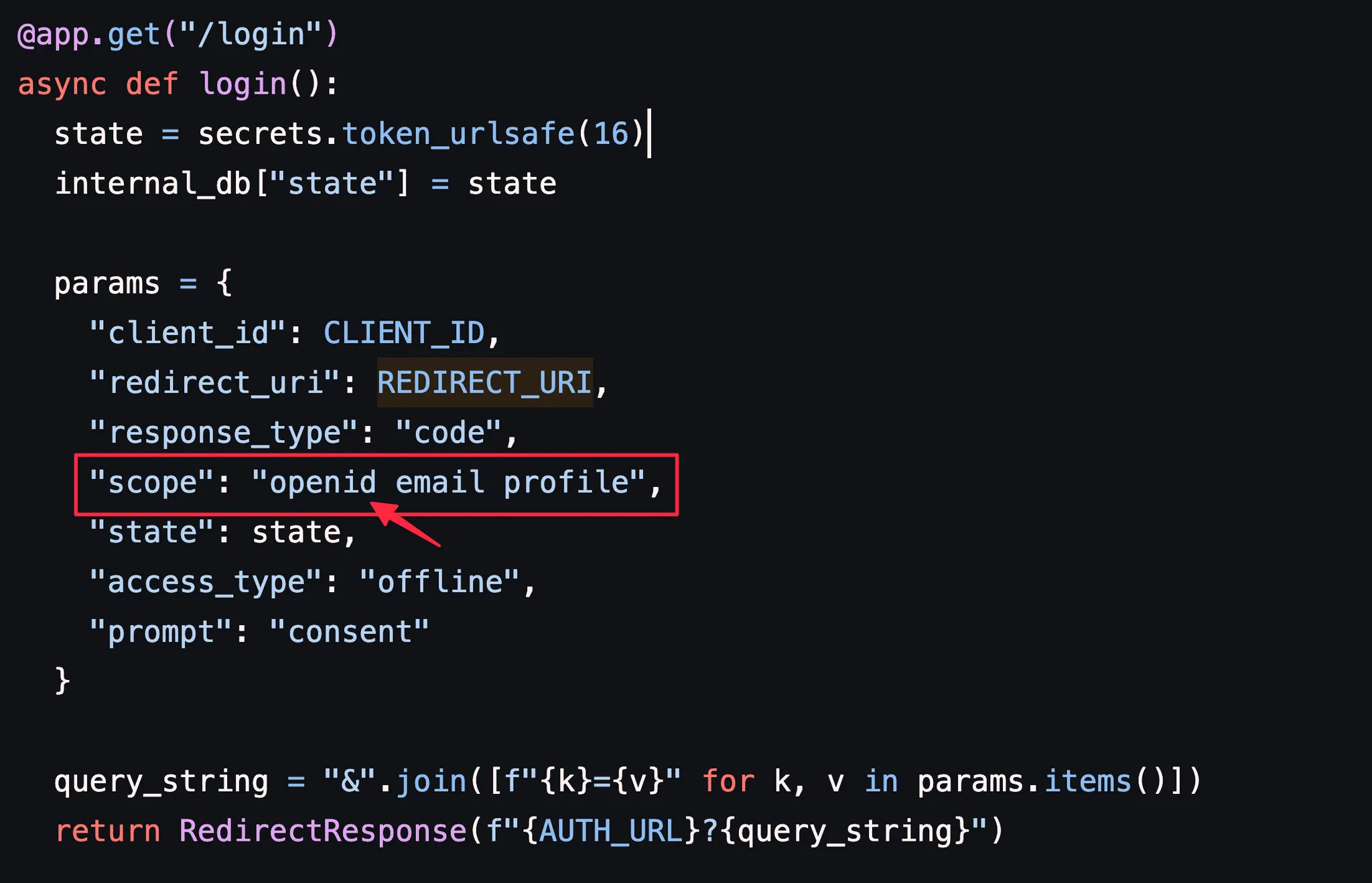 아래는 OAuth 핸즈온에 사용한 코드 예입니다. 아래 코드를 실행하면 scope에 openid가 있기 때문에 authorization server는 OIDC 프로토콜로 인식합니다.