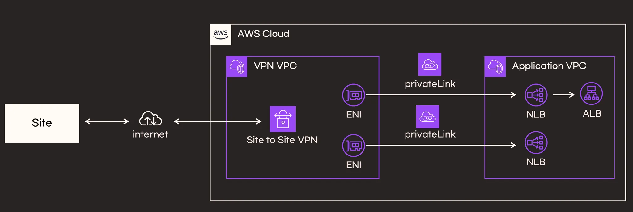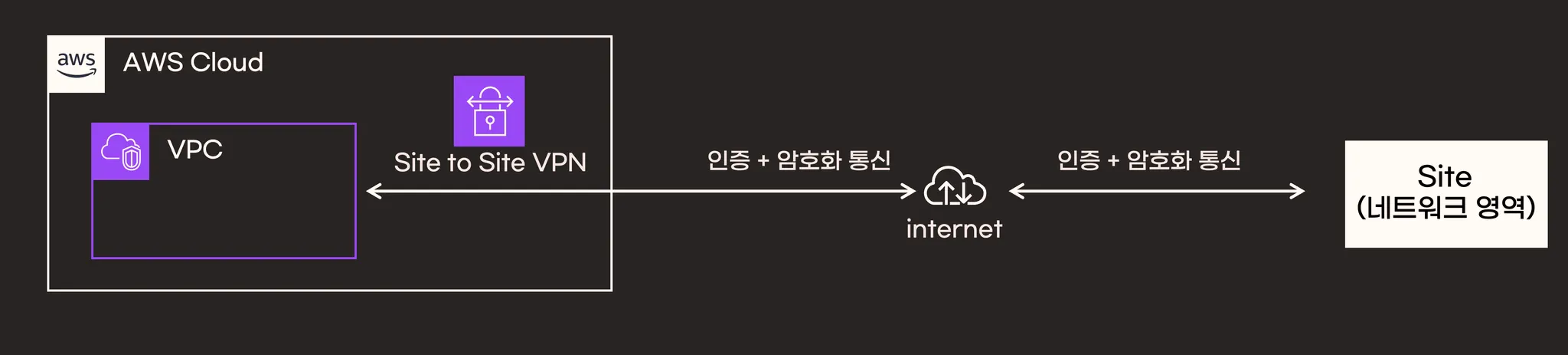Site to Site VPN은 공중망 VPN을 사용하기 때문에 인터넷을 통한 public 통신을 의미합니다. private 통신을 의미하는게 아닙니다. VPN을 사용해 연결된 네트워크에 접근할 수 있어 private 통신처럼 보일 수 있지만, 실제로는 public기반 암호화 통신입니다.