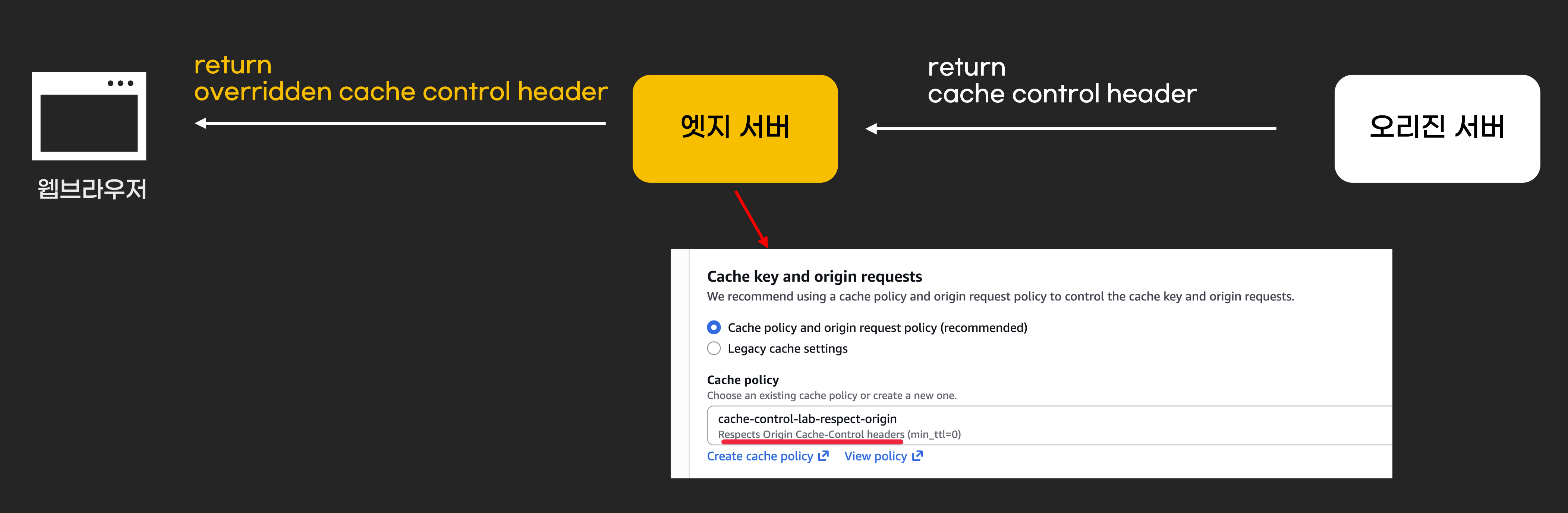 엣지 서버는 오리진 서버가 전달한 Cache-Control 헤더를 사용하지 않고, 엣지 서버 본인만의 Cache-Control을 사용할 수 있습니다. 엣지 서버가 오리진 서버의 Cache-Control 헤더를 사용하면 존중한다는 의미로 respect라는 단어를 사용합니다.