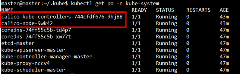 인터넷 환경에 따라 3~10분정도 소요됩니다. 성공적으로 설치되었다면 calico pod가 running 상태입니다.