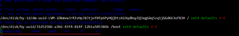 그리고 /etc/fstab에 swap이 적혀 있는 라인을 주석처리합니다.