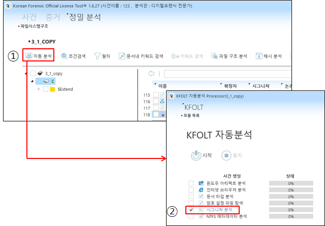 법률, 디스크 이미징, 디스크 복원 생략 (복원은 디지털포렌식 2급 실기 175 ~ 182 페이지 참고) 1. 본사의 조작지시와 조작된 POS데이터의 흔적을 찾아 해당 파일을 추출하여 제출하시오 1.1. 시그니처 분석 시그니처 자동 분석을 통해 확장자와 시그니처가 다른 파일을 찾는다. 조건검색으로 확장자와 시그니처가 다른 파일을 필터링한다. 1.2. 시그니처가 불일치한 파일 분석 "본사지시사항에 대한 답변.jpg"는 이미지 파일이지만 KFOLT의 Image로 분석하면 이미지가 보이지 않는다. 하지만, Document로 분석하면 파일 내용이 보인다. [이미지 04]에 있는 내용을 복사해서 메모장에 붙여넣기 한다. 본사가 지시한 조작한 내용이 확인된다. '본사지시사항에 대한 답변.jpg'를 더블 클릭하면 해..