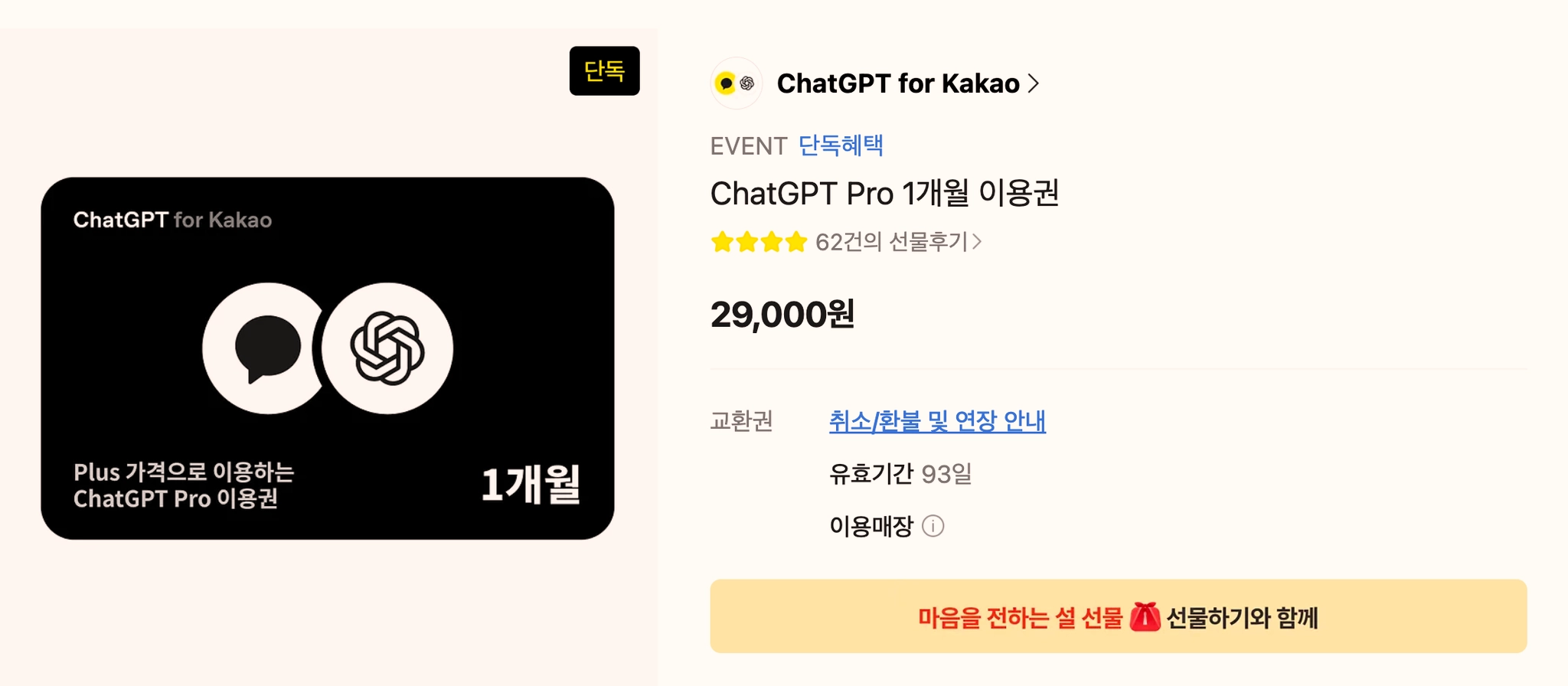 2025년 10월쯤에 카카오에서 "ChatGPT for kakao"라는 상품을 출시했습니다. 현재 카카오에서는 “ChatGPT for kakao” Pro 요금제를 29,000원에 판매하고 있습니다. 원래 가격은 290,000원인데 10% 가격으로 팔고 있습니다. 재밌는 건 이 이벤트 이용권이 ChatGPT 요금제와 연동됩니다. 그래서 ChatGPT 290,000원짜리 요금제를 29,000원에 한 달 동안 사용할 수 있습니다. 아래 그림은 카카오 이용권 등록 후 ChatGPT에서 확인한 요금제 화면입니다. 따라서 2월에 출시되었던 codex 5.3을 카카오 이용권으로 값싸게 사용할 수 있습니다. codex 5.3은 claude 4.6 Opus 모델과 같이 좋은 평가를 받고 있습니다. 사용방법1. 카카오 ..
