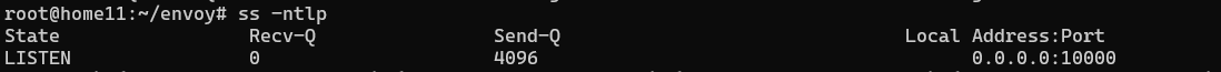 envoy가 잘실행되면 10000포트가 오픈됩니다.